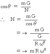 球に作用している遠心力の大きさ : m ×( R sinθ )× ω2