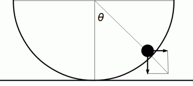 重力のお椀の接線方向成分 と 遠心力のお椀の接線方向成分 の合力は 0 であるから、