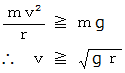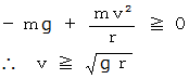 とする。 このとき、 遠心力の大きさが重力の大きさ以上であればよいのだから、次の式が成り立てばいいことになる。