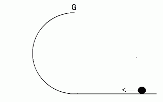 で左方向に打ち出します。 その後、 この玉はどんな移動をするでしょうか。 摩擦はないものとします。平地を移動している間は、 玉の運動エネルギーは