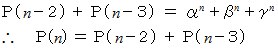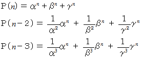 ペラン数列 : 0 2 3 2 5 5 7 10 12 17 22 29 39 51 68 90 119 158 209 277