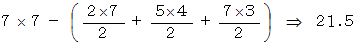 「 図形の中に存在する単位格子の交点の合計 」と「 頂点または辺の上に存在する単位格子の交点の合計を2で割ったもの 」を加えて、それから 1 を引いたもの がほぼ図形の面積に等しくなっている。