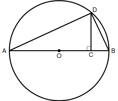 線分AB は円の直径である。円周上の点D から線分AB に垂線を下した。