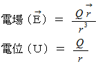 を持つ点には、 次の式で与えられる 電場 と 電位 が形成されます。