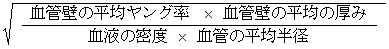 以上のスピードで血管の壁を伝わって行きます。 このスピード( 脈波伝播速度 )は次の式で与えられる値に比例します。