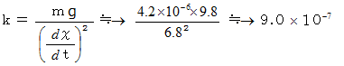 つまり、 速さが上のようになった時に、 落下速度の大きさは一定になるということです。 そして、 質量の大きな物質のほうが、 一定になったときの速さが大きいということです。 というわけで、 現実では、 質量の大きな物質のほうが速いスピードで短時間に落下します。