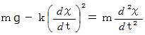 次の式で与えられる空気抗力があるとき、 ( 空気抵抗は移動している物質の速さの2乗に比例します。 質量とは無関係です。)
