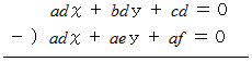 PRINT " d x + e y = f "