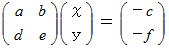 LET x = ( c*e − b*f ) / ( a*e − b*d )
