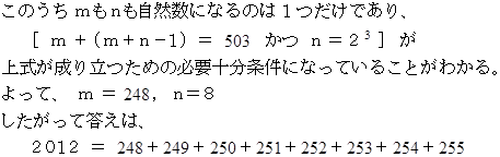 2012 を 連続する自然数の和で表せ