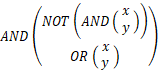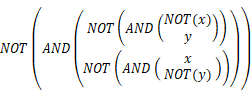 AND ( x, y ) : x = 1 かつ y = 1 ならば 1 を出力し、それ以外は 0 を出力する。