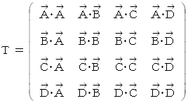 このときの 内積行列 を T とすると、