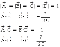 全体集合を、 始点と存在平面を共有する大きさ 1 のベクトルとします。
