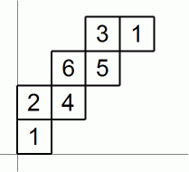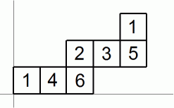 出た目の数がすべて異なる場合、 サイコロの移動のパターンは次の例で表されるような2種類に大きく分かれます。 これらの違いは、 横に長いかどうかの違いではありません。 ジグザグに進むか、 3個並んだら隣の行または列に移動するか、 の違いです。