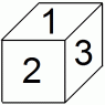 上記の例は、 最初に次の図のようにサイコロが置かれている場合であり、 サイコロの移動を上から観察した図になっています。