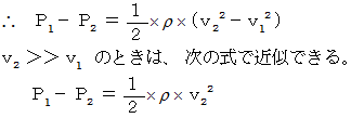 粘着性のない定常流の条件下では、 ベルヌーイの定理 が成り立ちます。 位置エネルギーが一定の時のベルヌーイの定理は次のように表されます。