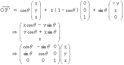 十進BASIC で、 3次元空間で任意の軸を中心に点を回転させたときの座標値を得るプログラムを作ってみました。