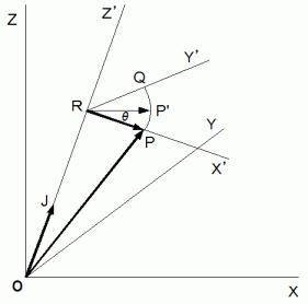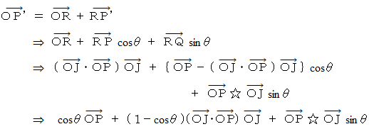 を軸として右ねじの方向に90度回転させると、