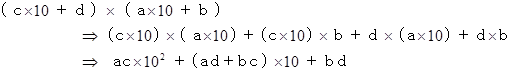 以上のような方法で10進数の掛け算の答えを求めるプログラムです。