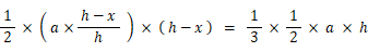 底辺BCよりも x 上方の底辺BCに平行な線分が△ABCを面積比 1:2 に2分するものとします。そして、底辺BCの長さを a とします。すると、2つの三角形の面積比から次の式が成り立ちます。