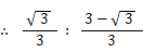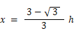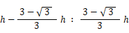 したがって、高さ h を上から次の比に内分する点を通る底辺に平行な線分が、△ABCを面積比 1:2 に2分するものになります。