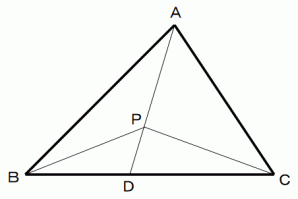 (1)より、 △ABP と △PBC と △ACP の面積は等しいことが判る。