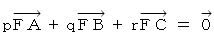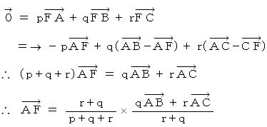 この式より、 Fは頂点Aと辺BCを r :q の比に内分する点とを結ぶ線分上にあることが判る。