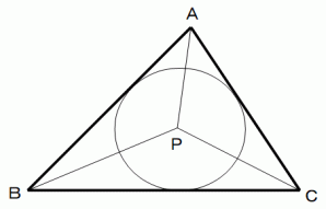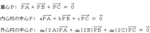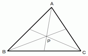 したがって、 △ABP と △PBC と △ACP の面積の比は、 sin(2C) : sin(2A) : sin(2B) である。