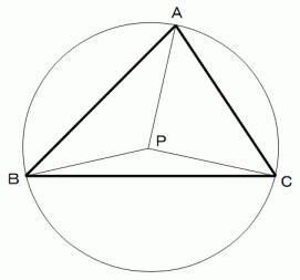 円周角の定理より、 ∠BPCは∠BACの2倍である。