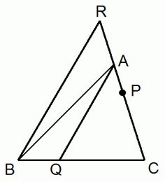 線分RB と 線分AQ は平行である。