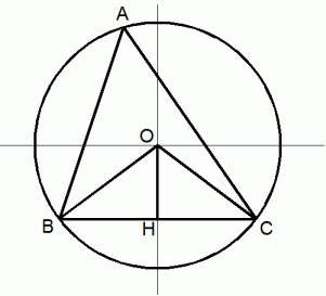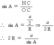 どんな三角形でも外接円を描くことができます。 外接円の中心は、 三角形の2辺のそれぞれの垂直二等分線の交点になります。 外接円の半径の長さを R とすると、 次の式が成り立ちます。