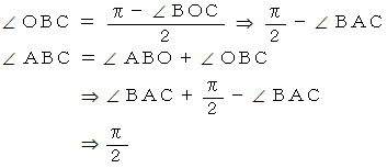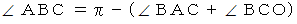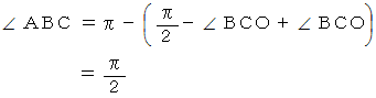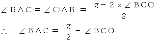 は2等辺三角形である。三角形の内角の和は π だから、
