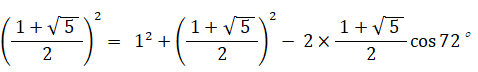 まず、 cos 72° を求める。次の図を利用する。( △ACDと相似な図形である。 )