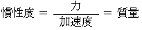 「 拡張された慣性の概念 」を「 元来の慣性の概念 」と区別するために、 私は、「 拡張された慣性の概念 」を「 慣性度 」と言っています。「 慣性度 」は質量と同等ですから、 ニュートンの運動方程式より、