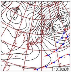 北側の寒気は南側の暖気の下に潜り込もうとし、南側の暖気は北側の寒気の上に乗り上げようとします。従って、北側の寒気で生じる「風の基」は基本的に下降する北風であり、南側の暖気で生じる「風の基」は基本的に上昇する南風です。