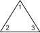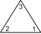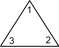 型紙を切り抜いて正三角形を作ります。それを底辺がどれか分かりやすいようにして机の上に置きます。底辺の左側の角に 1 と記入し、底辺の右側の角に 2 と記入し、頂角に 3 と記入します。次に正三角形を裏返し、3つの角に表と同じ数を記入します。正三角形の表裏の区別はしないものとします。上図の一番左側の正三角形の姿勢を ( 1 2 3 ) と表し、一番右側の正三角形の姿勢を ( 2 1 3 ) と表すことにします。