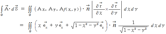 の曲面と垂直な成分の大きさの総和 ( スカラー場の面積分 ) であることが解ります。( 面積分には、 これ以外にも外積型がありますが、 ここでは触れません。)