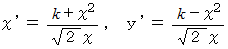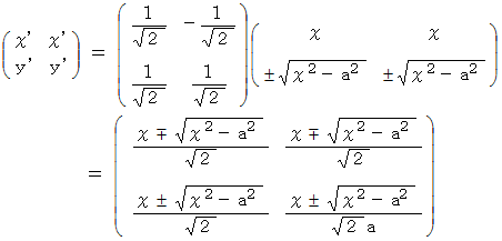 原点を中心として45度反時計回りに回転させたものであると言うことができます。