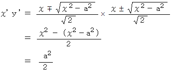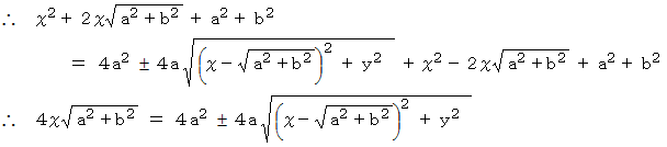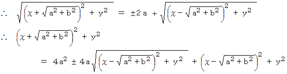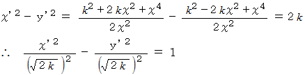 この式で表される双曲線上の点は、 次の2つの焦点からの距離の差が