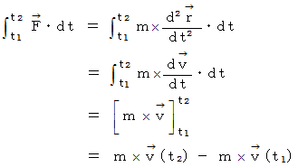 運動方程式から運動量が発見されました。 それは、 両辺を時間で積分することによってです。