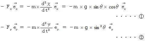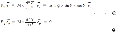 4. 合成力の水平方向成分を質量で割ると、 水平方向の加速度が求まり、 合成力の垂直成分を質量で割ると、 垂直方向の加速度が求まる。