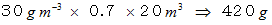 、 湿度70% のとき、 6畳の部屋の空気中の水蒸気を全部水に変換すると、 その質量はいくらになるでしょか?