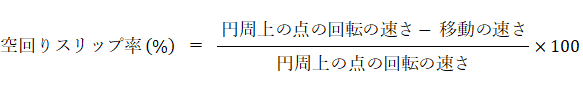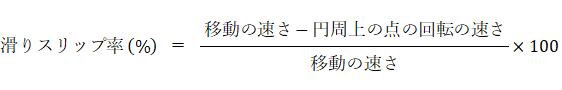 自力回転体が回転走行をしているときのスリップ率は次の式で与えられます。