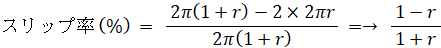 @ の場合: r = 1 を代入して、 スリップ率 = 0 %