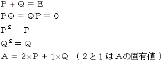 ここで、 P + Q = E と 2P+1Q = A( 2と1はAの固有値 ) とを満たす 2つの要列 P と Q を見つける。