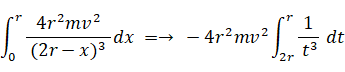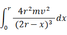 mV2 / (2r− x ) =→ 4r2mv2 / (2r− x )3