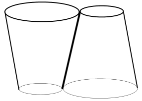 同じ大きさの紙コップを2つ用意してください。 一方は普通に机の上に置き、 一方は伏せて机の上に置きます。 2つの紙コップを接触させます。 すると接触した部分は机に対して垂直ではない線分になっています。 2つの紙コップを接触させたまま、 同じ角速度の大きさで2つのコップを回転させてください。 ただし回転方向は2つのコップで逆向きにします。 紙コップの高さのちょうど真ん中の接点は、 スリップ無しの「 歯数無限大歯車様回転(私による造語)」になっていますが、 それから遠のくに従ってスリップの割合が多くなる「 スリップ回転(私による造語)」になっています。 回転半径が小さい方が滑っていて、回転半径が大きい方が空回りしていて、2つの紙コップはスリップし合っています。