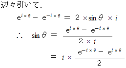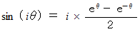この式から、 虚数角の正弦は次のように定義される。
