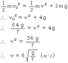 の所で安定した水平な等速円運動の軌道に入った。そのときの重りの速さ (