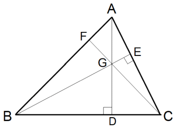 三角形の各頂点から対辺に垂直に下ろした線分は1点で交わり、その点を垂心といいます。